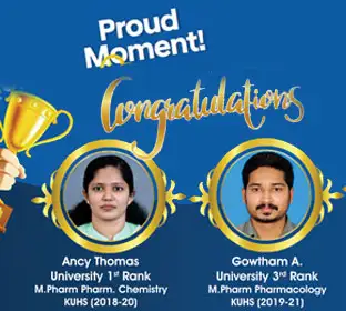 The college is offering M.Pharm in Pharmaceutical Chemistry, Pharmaceutics and Pharmacology. The PG students are provided with advanced research and lab facilities. The PG students are guided by well qualified and experienced Faculty Members.